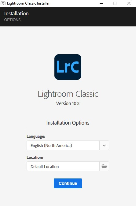 Bước 3: Bạn chọn Continue để tiếp tục tải xuống Adobe Lightroom Classic 2021.