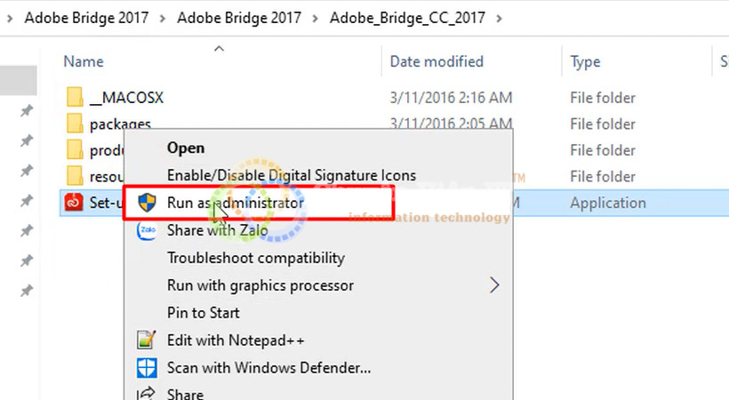 Bước 1 : Giải nén Adobe Bridge 2017.