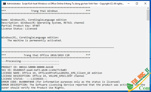 – Đây là một điểm bạn cần hết sức lưu ý. Sau khi bạn kích hoạt bản quyền Windows 10 trên thiết bị, nếu sau này có thay đổi phần cứng máy như: Main… thì bạn sẽ mất bản quyền. Nếu muốn được kích hoạt trở lại, người dùng cần phải liên hệ với bên hỗ trợ của Microsoft (hoặc đơn giản là chạy lại Script này 1 lần nữa).
