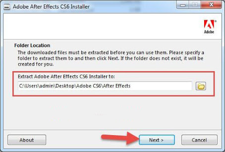 Tiến hành giải nén bằng winrar. Click vào file “AfterEffects_11_LS7.exe” để cài đặt. Rồi chọn “Next“