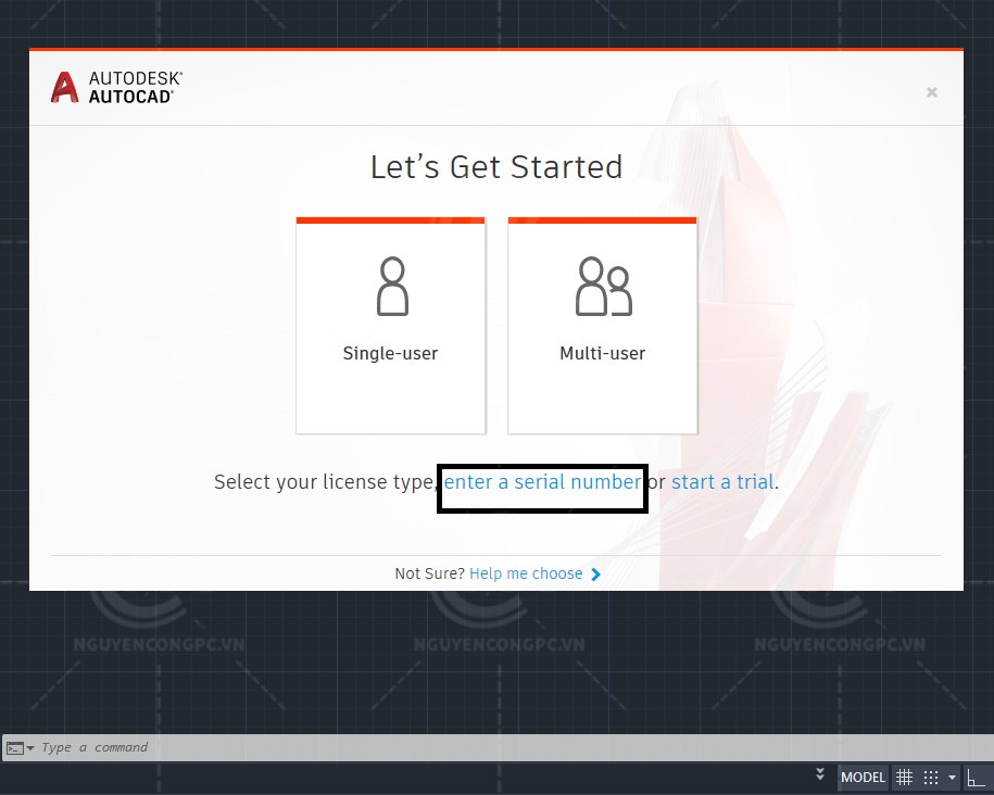 B1: Khởi động phần mềm vừa cài đặt (nếu phần mềm đang mở thì bạn hãy tắt đi và mở lại nhé). Sau đó click vào dòng chữ “Enter a serial number”.