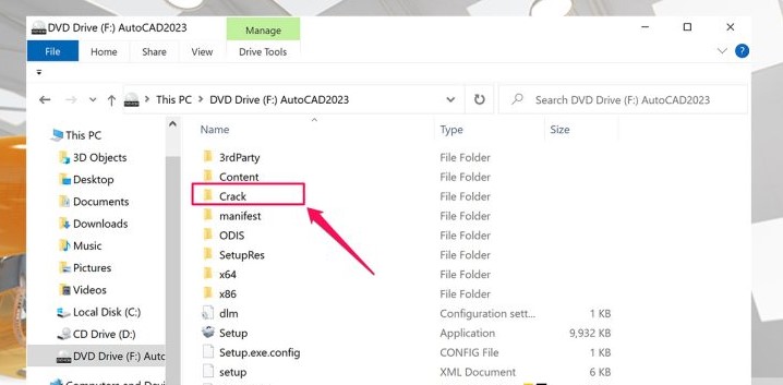 Bước 1: Tiếp theo, bạn mở lại thư mục ở ổ đĩa ảo ban đầu, click đúp chuột để mở thư mục Crack. Tại đây, bạn tìm file “acad” và copy file này.