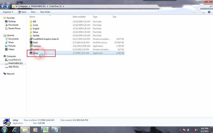 Bước 3: Chạy cài đặt phần mềm coreldraw 12 vào máy tính